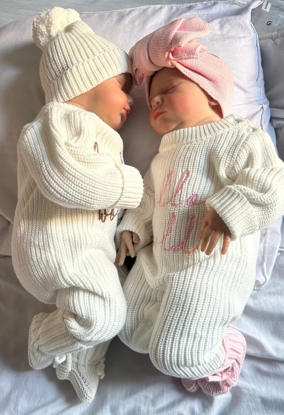 Hello World – Des tenues en tricot naturel, idéales pour la photo de naissance.